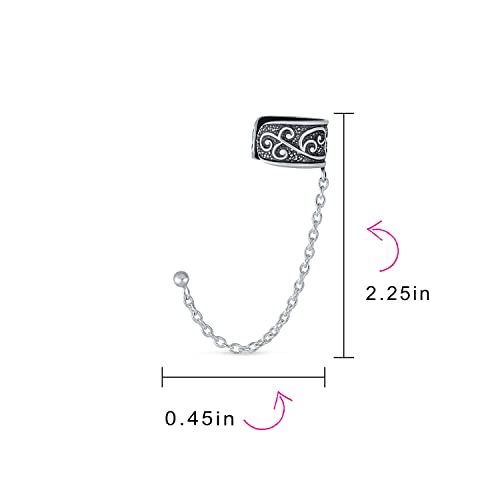 Questo affascinante ma economico bracciale celtico all'orecchio è realizzato in argento sterling 925 lucidato con una finitura ossidata in stile antico e ha un'elegante catena d'argento attaccata al bracciale che penzola sull'orecchio per un meraviglioso look in stile vintage.