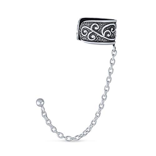 Bali Boho stile Vine Scroll catena cartilagine orecchio polsino orecchini per gli uomini per le donne ossidato .925 Sterling Silver