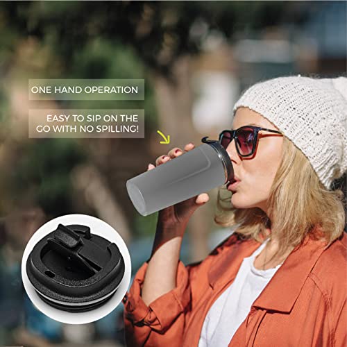 COPERCHIO SENZA BPA E RESISTENTE ALLE PERDITE - Extra sigillato, il coperchio offre la massima capacità di protezione dagli schizzi. Bere foro sulla parte superiore per sorseggiare facilmente. Amichevole alla paglia. Mantieni le tue bevande isolate e protette più a lungo! Il design a bocca larga rende il lavaggio un gioco da ragazzi. Tutti i componenti sono anche lavastoviglavabili in lie per facilitare la pulizia di uomini e donne che lavorano.
