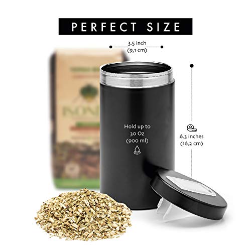 DIMENSIONE PERFETTA - Un contenitore di grande capacità è un must quando si tratta di un contenitore Yerba. In qualità di esperti del settore Mate, abbiamo progettato lo Yerbero ideale da avere a casa, in ufficio o da portare in viaggio! Misure: D9,1 X H16,2 CM / D3,5 X H6,3 POLLICI. Tenere fino a 30 once - 900 ml.