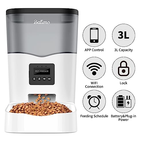 Balimo Leon 3L Distributore Automatico di Cibo per Gatti | 2.4G WiFi Dispenser Crocchette Cibo Cani Automatico | Pet Feeder Automatico Mangiatoia per Animali Domestici(Nero)