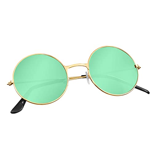 BALINCO Set Hippie con parrucca + occhiali da sole rotondi + ciondolo della pace + fascia verde per uomini e donne Carnevale anni '70