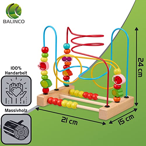 BALINCO MOTORIC Slide, Labirinto di Perline Giocattolo in Legno con Elementi e cursore di Perline. Giocattolo per Bambini 6 Mesi