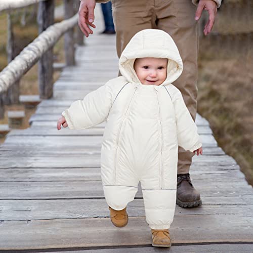 Balipig Tuta Da Neve con Cappuccio Da Bambino Pagliaccetto in Cotone Invernale Tuta Intera In Cotone per Neonato Tutine per Bebè Unisex 9-12 Mesi, Tuta da neve bianca
