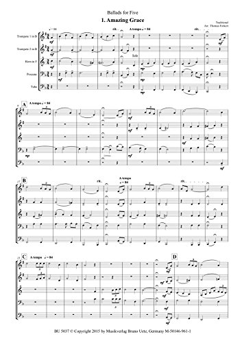 Ballads For Five For Brass Quintet/per sassofono contralto cinque per Ottoni Quintetto (Score e Voci)