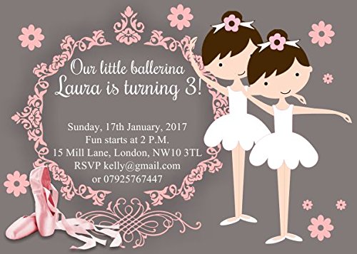 10 x ballerina Ballet personalizzabile ragazza inviti per festa di compleanno o di ringraziamento with Pink envelopes