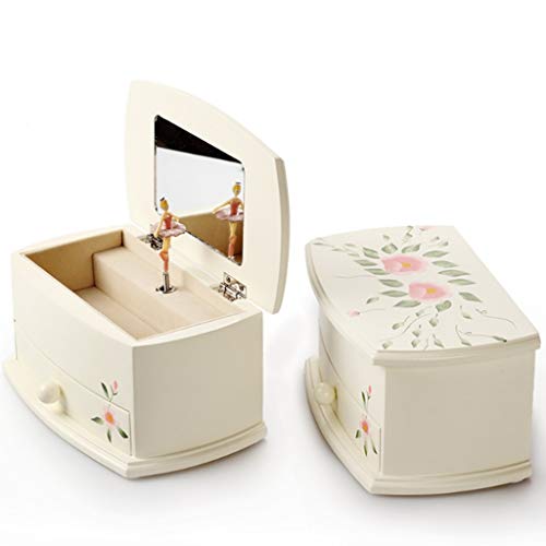 Ballerina Music - Portagioie con cassetto estraibile, custodia per gioielli, motivo: Lago dei cigni e Tune Spin Balling, scatola regalo (colore bianco)