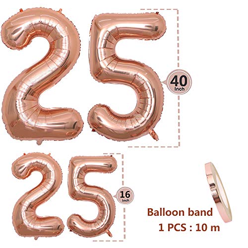 Balloons Number 25 Birthday XXL Rose Gold-Palloncino foil gigante in 2 misure 40 "e 16" | Set di decorazioni per compleanno 100cm + Mini 40cm|Totale quattro numeri | Ideale per il 25 come decorazione