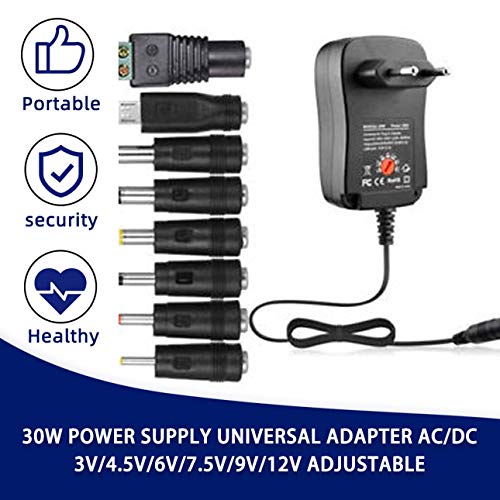 Ballylelly Alimentatore universale da 30 W AC/DC 3V / 4.5V / 6V / 7.5V / 9V / 12V 1.5A regolabile