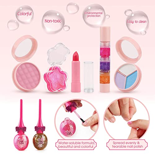 Balnore Trucco Bambini Set, 34 Pezzi Lavabili Set Trucchi Bambina con Custodia Cosmetica Trucco Ragazza Giocattolo per Compleanno, Festival