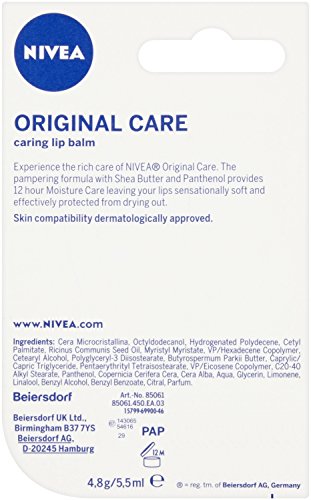 Balsamo labbra nutriente originale Nivea Care, 4,8 g, confezione da 12 (etichetta in lingua italiana non garantita)