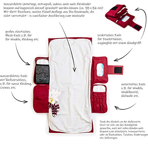 Balu - Borsa fasciatoio, con fasciatoio integrato per bambini da viaggio 86 x 38 cm - Morbido fasciatoio in flanella lavabile - esterno impermeabile e lavabile - Baby Organizer (Rio rosso)