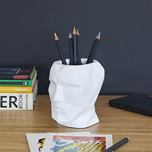 Balvi Porta matite The Head Colore Bianco Forma della Testa Silhouette Geometrica Cemento