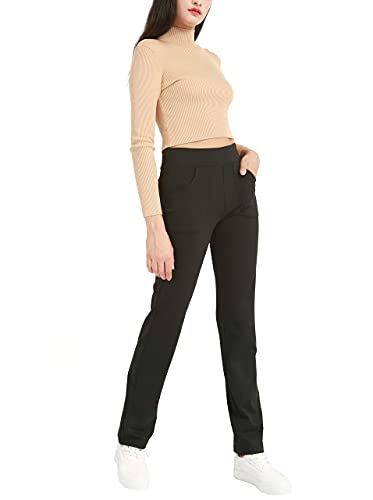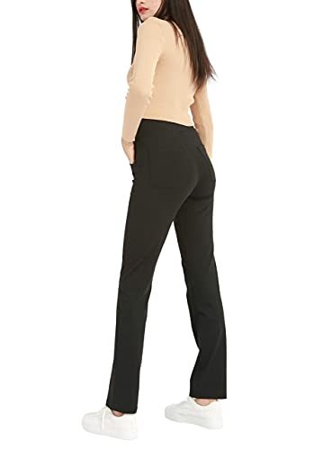 Bamans Pantaloni da Donna con 4 Tasche, Neri Pants Leggeri Eleganti Elastico Straight per Casual (Nero, Small)