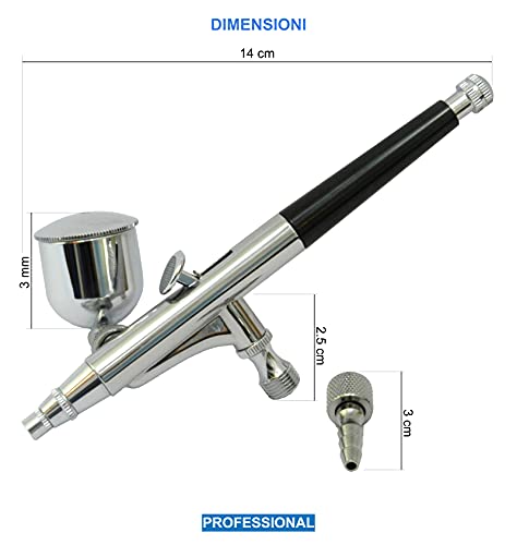 E' multiuso in quanto é ideale per tutti gli usi di principianti e studenti e di artisti avanzati. Funziona perfettamente per la maggior parte delle applicazioni di aerografia e con tutti i tipi di vernice spray.