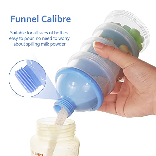 Contenitore per polvere di latte a 4 strati: Dosatore per latte in Polvere con 4 strati di scomparti, ogni strato può contenere circa 35-40g, e con coperchio a imbuto, facile da versare il latte in polvere.