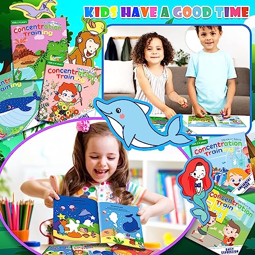 Bambebe Riutilizzabili Adesivi Libro per 2 3 4 5 6 Anni, Riutilizzabile Impermeabile Sticker Libri Giocattoli per Bambini, Adesivi Libri per Bambini, Animal Space Dinosaur Sticker educativo Regalo