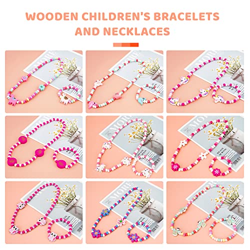 Bambina Collana Braccialetti 18 Pezzi,Gioielli Bambina,Set di Gioielli in Legno,Collana Bracciali Amicizia Bambini,Bambina Unicorno Collana Bracciali,Collane Principessa,Regalo Compleanno per Bambina