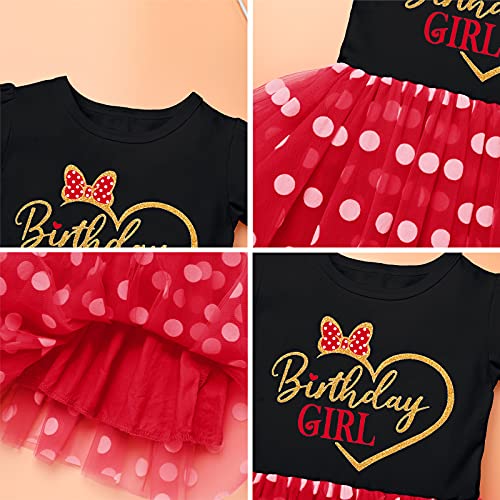 Bambina Costume da Minnie Mouse per Natale, Ragazze Vestito Tutu da Principessa a Pois Festa di Compleanno Fotografia Cerimonia Abiti con Fascia per Capelli 2Pz Impostato Nero + Rosso 2-3 Anni
