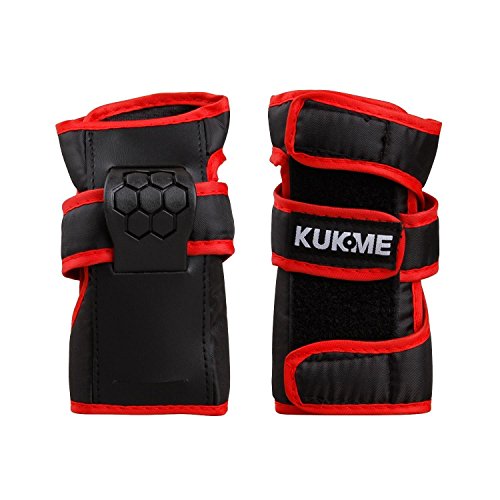 TXJ Bambini Ginocchio Gomito Polso Pastiglie Protector per Skateboard Roller Pattinaggio e Ciclismo (Nero-Rosso, M)