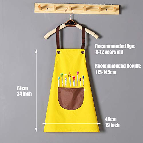 2 Pcs Bambini Grembiule Con Tasche, Grembiuli Pittura Per Bambini Regolabile Bambino Grembiuli Chef Per Ragazzi Ragazze,Artista Giardino Grembiuli Per Cucina,Cottura,Pittura,Bbq (Giallo, Marrone)
