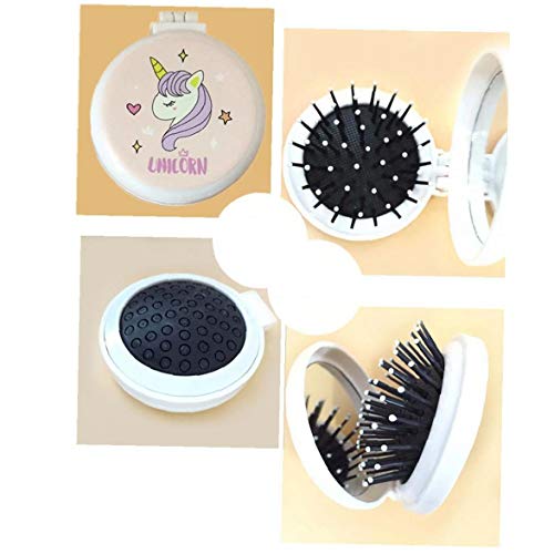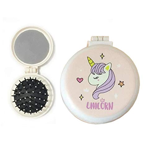 Bambini Mini Airbag Pettine Pieghevole Con Specchio Per Il Trucco Ragazze Rotonde Massaggio Spazzola Per Capelli Ragazzi Viaggi Pocket Pettine Dello Specchio Cartoon Unicorn Pattern (Viola)