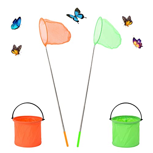 Bambini Rete da Pesca,2 Pezzi Telescopiche Pieghevoli Farfalle Insetti Uccelli Reti con 2 Secchio D'acqua Pieghevole per Bambini e Adulti Pesca Piscina Spiaggia Giochi All'aperto (orange)