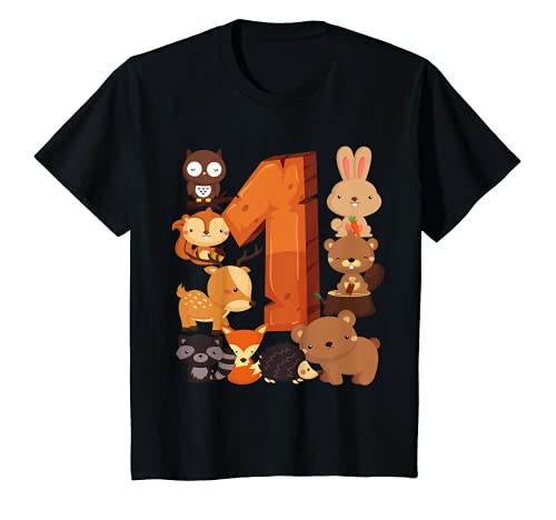 Bambino 1 anno vecchio bosco animale festa di compleanno foresta 1 ° regalo Maglietta