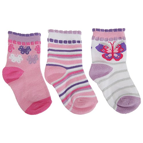 Bambino - Calzini fantasia di farfalle (confezione da 3) (19-22 EU) (Farfalle/Strisce)