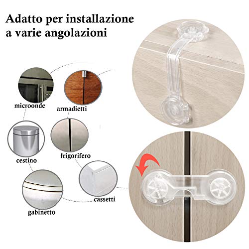 【Ampiamente utilizzato】: Serrature di sicurezza per bambini utilizzabile su tutti i tipi di superficie, mobili e gadget, elettrodomestici o su una porta, sull'armadietto, sul cestino, sul gabinetto, sulla credenza, sull'armadio, sulla cassettiera, sul microonde, sul mobile bar, sul frigo, sul freezer, sulla lavastoviglie, sulla lavatrice, sull'asciugatrice e sulle finestre.