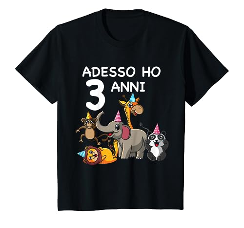 Maglietta per il terzo compleanno per bambini. I bambini e le bambine adoreranno il simpatico motivo con gli animali. Il 3 compleanno è un giorno speciale, adesso ho compiuto il mio 3 anni e festeggio!