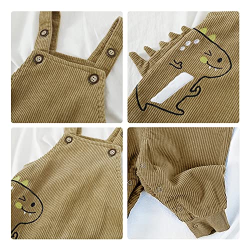 Bambino Dinosauro Salopette, Unisex Senza Maniche Regolabili Pantaloni Velluto a Coste(Marrone,2-3 anni,Taglia 95)