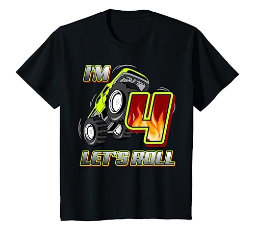Bambino Monster Trucks - Maglietta per 4° compleanno I'm 4 Let's Roll Maglietta
