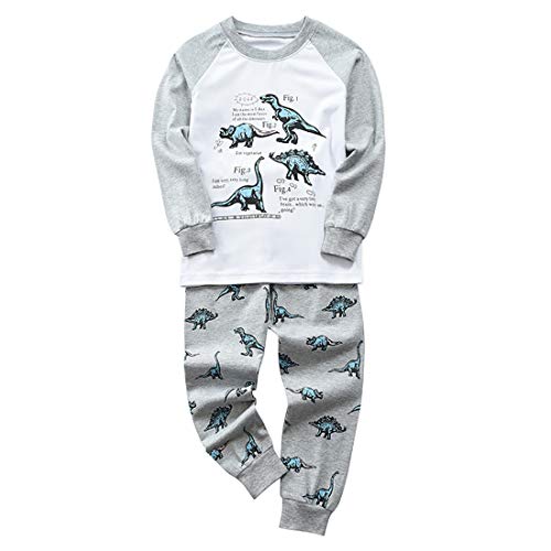 Bambino Ragazzo Dinosauro Pigiama Manica Lunga T Shirt Pantaloni Bambini 2 Pezzi Pigiameria Set Nightwear Grigio 2-3 Anni