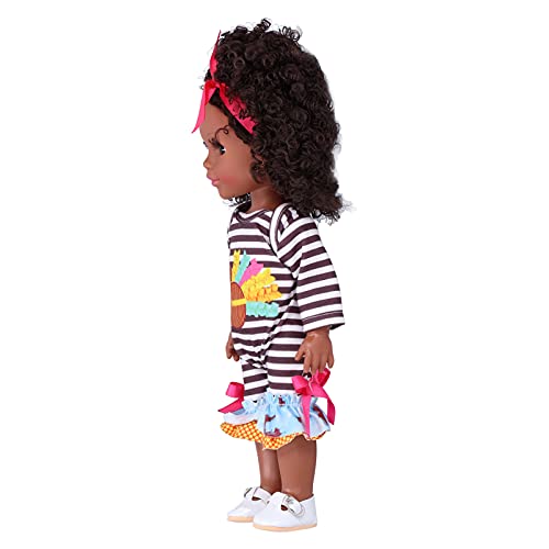 Black Girl Doll - Realistico africano simulato carino capelli ricci e pelle morbida nera, buon tocco e viso carino. Sembra davvero realistico. La testa e gli arti possono ruotare e possono sedersi e sdraiarsi. I vestiti sono sfoderabili e lavabili, è possibile acquistare altri vestiti per vestirla.
