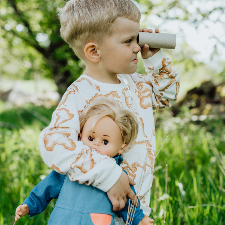 Dettagli del prodotto: Pim è una bambola che indossa una salopette e una felpa con cappuccio. Questa bambola è alta 45 cm e parla sei lingue diverse: Inglese, finlandese, francese, italiano, russo e tedesco. La lingua può essere facilmente cambiata utilizzando il comando posto sul retro della bambola. Premendo sulla pancia, la bambola pronuncia 24 frasi casuali che incoraggiano il gioco attivo, sia all'aperto che in casa. Il corpo della bambola è morbido e chiude gli occhi quando la si mette a terra. Dimensioni e peso: Dimensioni da assemblata (lunghezza x larghezza x altezza): 45 x 33 x 12 cm Peso: 1,11 kg Materiale e cura: Materiale: poliestere, plastica Istruzioni per la cura: pulire
