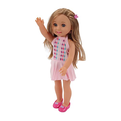 Delicata e adorabile: bambola alta 15 pollici, che indossa uno squisito vestito rosa, con fermaglio per capelli, nel complesso sembra bella e carina, attira l'attenzione dei bambini.
