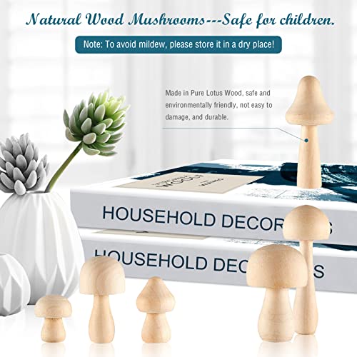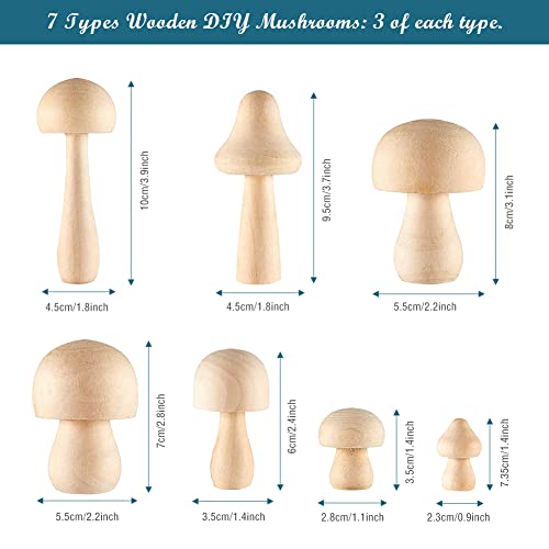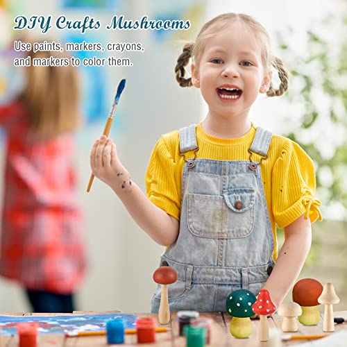 Bambole Legno Peg, Macause 21 Pezzi Bambole con Mollette in Legno non Finite con Varie Dimensioni Figure di Funghi in Legno Decorazioni Incompiute di Funghi in Legno per Bambini Pittura fai da