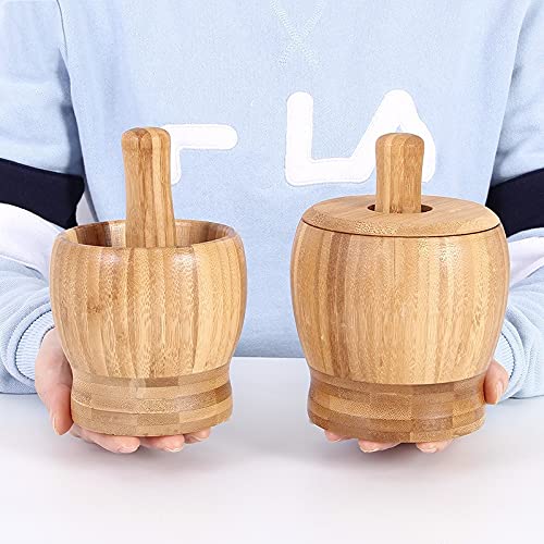 Bamboo Aglio Barattolo Di Barattolo, Dispositivo Di Ripieno Di Cibo Della Cucina, Ciotola Di Schiacciata Per La Pressatura Aglio, Smerigliatrice Con Il Coperchio Dispositivo Di Martellante,320ml.
