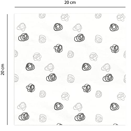 Bio bamboo - BIO Patterns Doodles 40x40 Tovaglioli monouso, Viscosa di bambù, Bianco con Stampa Nero/Grigio, 20 pezzi