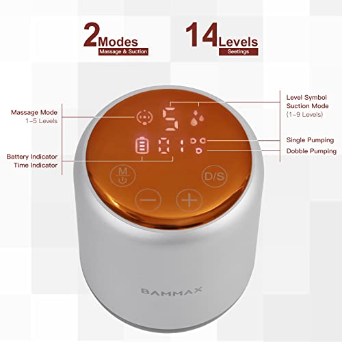 BAMMAX Portatile Tiralatte Elettrico Doppio, indolore con Modalità Massaggio, Touch Screen LED, Funzione Memoria, Ricaricabile, Forte Aspirazione, Senza BPA con Sacchetti per Latte da 20 Pezzi
