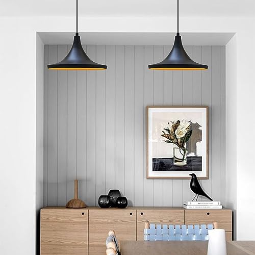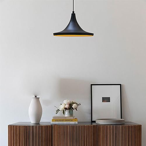Bamyum Genisy Lampada a Sospensione 31 cm Lampada a Sospensione Metallo E27 Moderna Lampada da Tavolo da Pranzo per Interni, Camera da Letto Soggiorno Cucina, Lampada da Cucina Nera a Sospensione