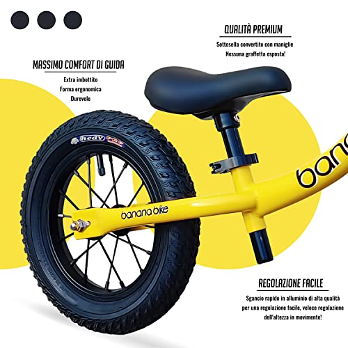 Banana Bike & LAVA Sport Banana GT Balance Bike - Senza Pedali - 2 a 5 Anni - Manubrio e Sedile Regolabili - Alluminio, Ruote Ad Aria - Giallo