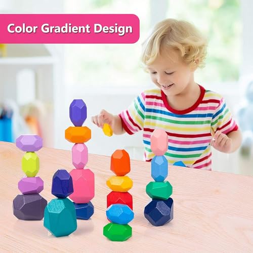 Banaone Pietre di Bilanciamento in Legno, 20 Pezzi Blocchi di Costruzione Montessori Giocattoli per Bambini, Apprendimento Educativo In Età Prescolare Giocattoli per Bambini Ragazzi Ragazze