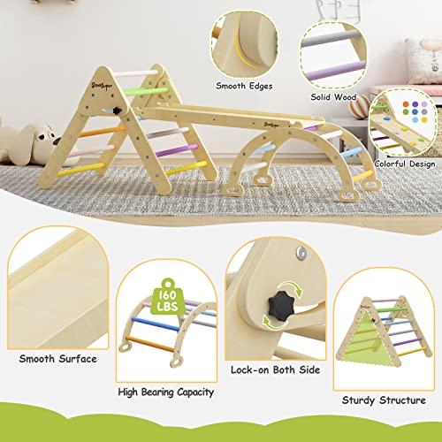 BanaSuper Colorato Triangolo Arrampicata 3 in 1 con Rampe e Arco Set Arrampicata Triangolo Montessori Giocattoli per Arrampicata per Bambini Parco Giochi Interno Palestra Regalo per Bambini