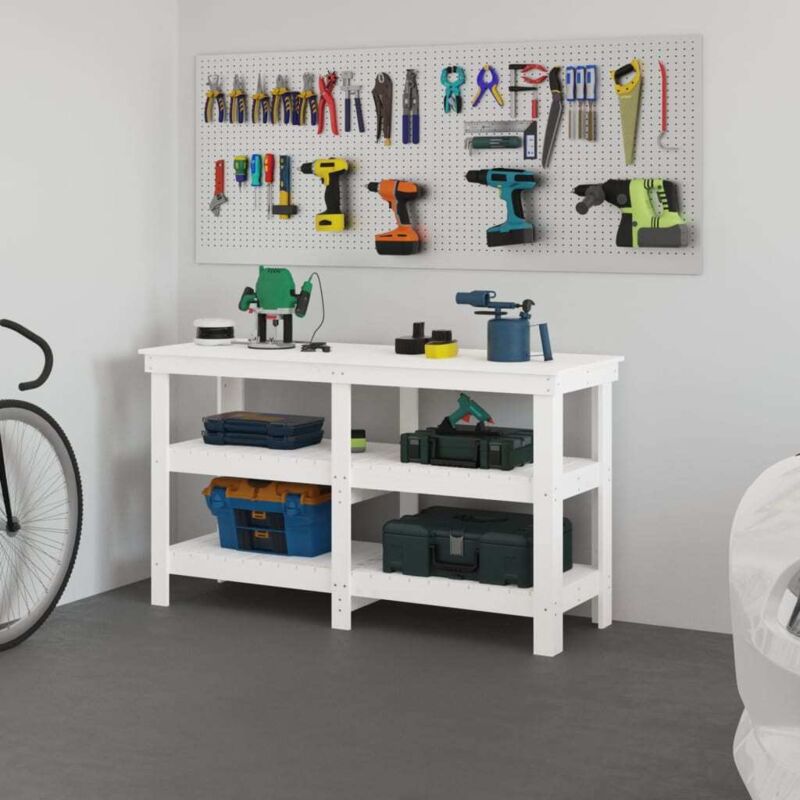 Questa panca da lavoro in legno rappresenta una pratica aggiunta al vostro ambiente. Legno massello di pino: Il legno massello di pino � un bellissimo materiale naturale. Il legno di pino ha le venature dritte e i nodi conferiscono al materiale il suo caratteristico aspetto rustico. Ampio spazio portaoggetti: Questo banco da lavoro, dotato di ripiani, offre ampio spazio di conservazione per riporre i vostri oggetti in modo organizzato e a portata di mano. Telaio robusto: Il telaio in legno garantisce robustezza e stabilit�. Avvertenza: Per evitare il ribaltamento, questo prodotto deve essere utilizzato con il dispositivo di fissaggio a parete (non incluso). Nota: Ciascun prodotto viene fornito con un manuale di assemblaggio nella confezione per un facile montaggio. Colore: Bianco Materiale: Legno massello di pino Dimensioni: 142,5 x 50 x 80 cm (L x P x A) Legal Documents: Maggiori dettagli su come evitare il rovesciamento dei mobili sono disponibili qui