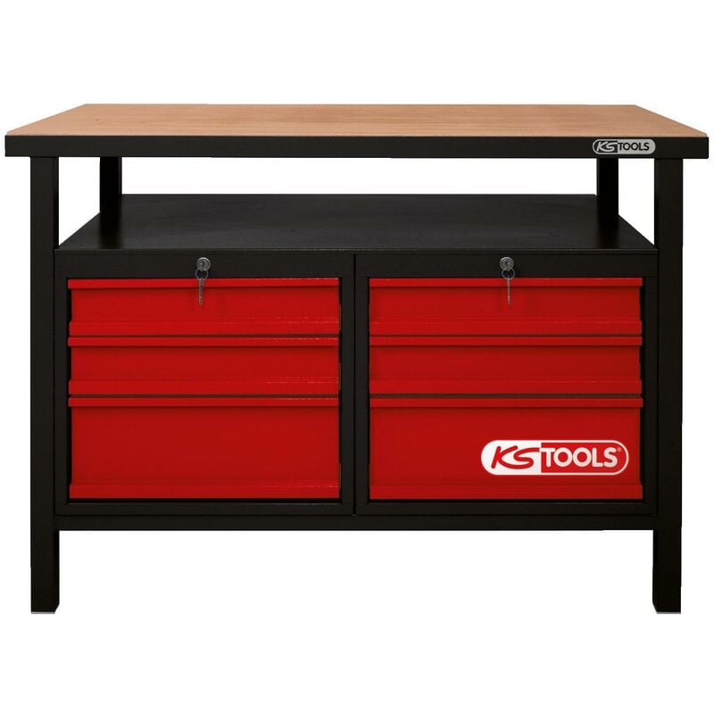 Struttura robusta in lamiera di acciaio con spessore 1,0 mm - stazionamento sicuro Elevata stabilità Struttura di base in acciaio robusto - tubo quadro Piano di lavoro in faggio pieno Con profilo in metallo Elevata stabilità grazie alle parti in acciaio saldate Chiusura centralizzata a cilindro per tutti i cassetti Cassetti scorrevoli su guide con cuscinetti a sfera Cassetti 100% estraibili Impugnatura cassetti a banda su tutta la lunghezza Verniciatura elettrostatica a polveri Portata per cassetto 35,0 Piano di lavoro sonstige arrotolabile nein Capacità di carico totale kg 400,0 Dimensione cassetto1 4 x H 85 x B 430 x T520 mm Peso del tessuto 86000 Dimensione cassetto2 2 x H 165 x B 430 x T 520 mm Profondità in mm 600.0 Sottotelaio Vierkantprofil Tipo di estrazione Vollauszug Dimensioni dell'imballaggio 1 Materiale1 Stahlblech Numero totale di cassetti 6 Attributo di funzione 1 Bloccabile Numero di porte a battente 0 Larghezza in mm 1200.0 Altezza totale in mm 840.0 Colore schwarz-rot