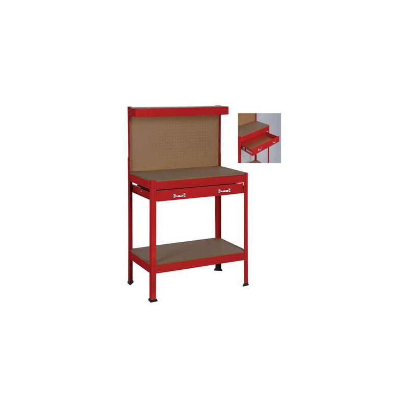Banco da lavoro in metallo misura cm 90x48xh.140 con ripiano in mdf spessore 9mm completo di cassetto e pannello forato