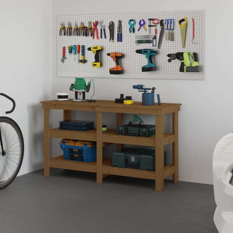 Questa panca da lavoro in legno rappresenta una pratica aggiunta al vostro ambiente. Legno massello di pino: Il legno massello di pino � un bellissimo materiale naturale. Il legno di pino ha le venature dritte e i nodi conferiscono al materiale il suo caratteristico aspetto rustico. Ampio spazio portaoggetti: Questo banco da lavoro, dotato di ripiani, offre ampio spazio di conservazione per riporre i vostri oggetti in modo organizzato e a portata di mano. Telaio robusto: Il telaio in legno garantisce robustezza e stabilit�. Avvertenza: Per evitare il ribaltamento, questo prodotto deve essere utilizzato con il dispositivo di fissaggio a parete (non incluso). Nota: Ciascun prodotto viene fornito con un manuale di assemblaggio nella confezione per un facile montaggio. Colore: Miele Materiale: Legno massello di pino Dimensioni: 142,5 x 50 x 80 cm (L x P x A) Legal Documents: Maggiori dettagli su come evitare il rovesciamento dei mobili sono disponibili qui
