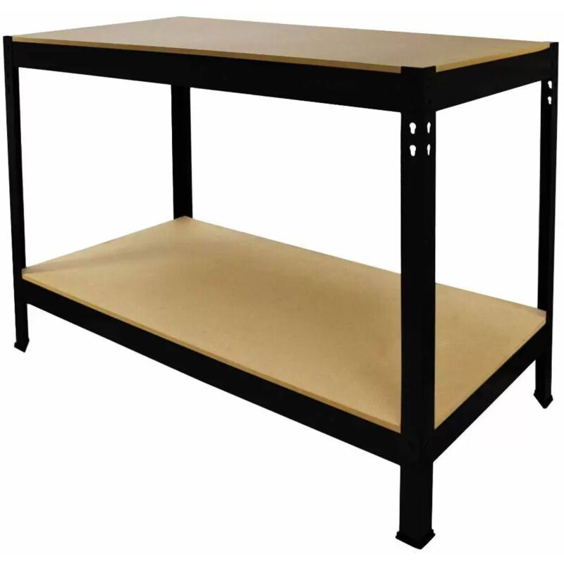 Banco da Lavoro Banco da Lavoro Porta Attrezzi 100 cm in Acciaio Nero Scaffali e banchi perfetti per il tuo garage, magazzino, serra o officina grazie alla loro versatilità e robustezza che hanno una portata impressionante in rapporto alla loro dimensione. Assemblaggio ad incastro con perni a serratura senza bulloni, montaggio facile con il solo uso di un martello di gomma. Inoltre, i ripiani possono essere regolati ad altezza a piacere per la massima modularità. Con solidi mensole a pannelli in MDF e piedini vulcanizzati per stabilità extra, gli scaffali e i banchi da lavoro Q-Rax sostengono fino a 200KG per mensola! Nota: l'MDF incluso in tutte le nostre scaffalature e banchi da lavoro non è trattato. Consigliamo ai clienti di trattare ogni tavola prima di utilizzarla in ambienti freddi o umidi. Caratteristiche Tecniche Questo banco da lavoro è al 100% senza bulloni, facile da montare, i pezzi si incastrano in poizione con un martello di gomma Rifinito con una struttura in acciaio